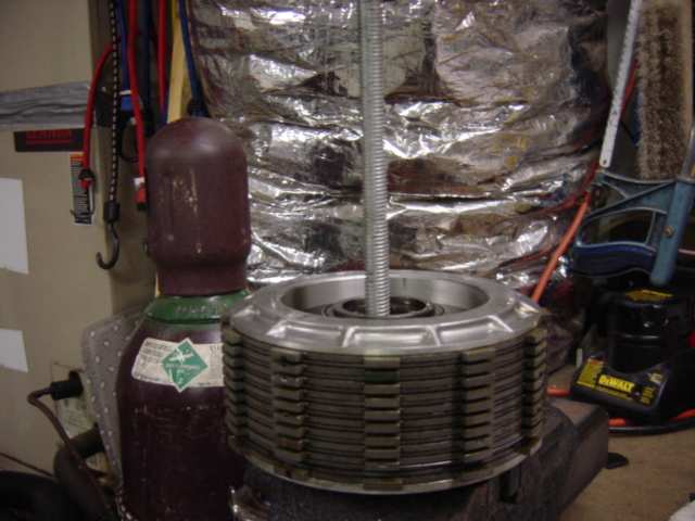 This is the setup I use to hold the plates straight and snug for an easy fit. I snug it up and fit into basket, then go back and install the springs. Once the springs are in it is hard to align any of the plates.